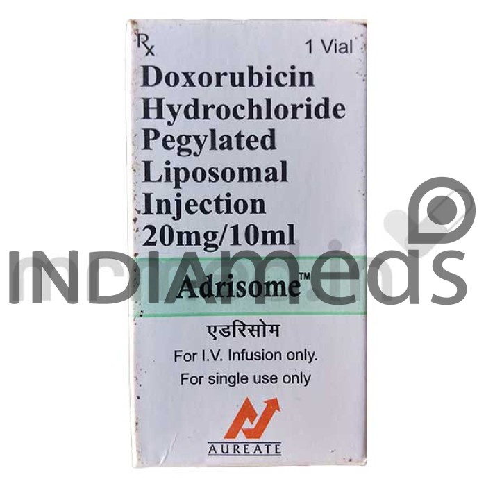 Adrisome 20mg Injection is an anticancer medication that contains the active constituent doxorubicin encapsulated in a closed lipid sphere (liposome). Cancer is a disease in which cells multiply in an uncontrolled and abnormal manner. This medication treats breast cancer, ovarian cancer, multiple myeloma (cancer of white blood cells called plasma cells), and AIDS-related Kaposi’s sarcoma.