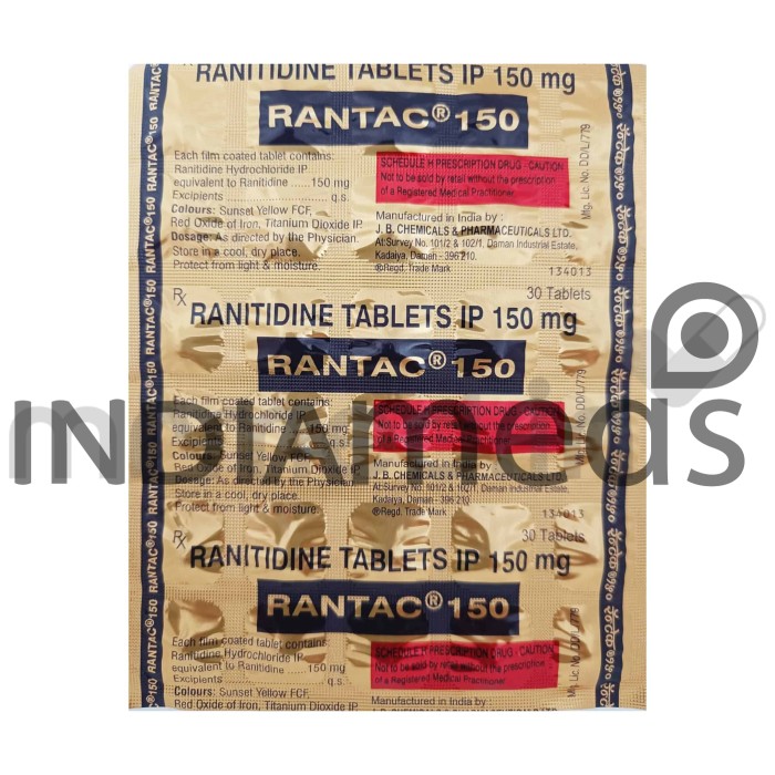 Rantac 150mg tablet contains the active ingredients Ranitidine. It belongs to the family of medications known as the H2 receptor antagonist. This medication treats heartburn, indigestion, and acid indigestion and reduces the amount of acid the stomach produces. It is used for treating and preventing stomach ulcers. It also treats duodenal (small intestine) ulcers. Before starting the treatment with this medication, inform your doctor if you are more than 65 years of age.