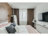 Нередкое явление – окно не посередине стены, а где-нибудь с краю, почти в углу. В таком случае стандартный комплект занавесок, к которому все привыкли, будет выглядеть мягко говоря плохо. С одной стороны шторы окажутся слишком «жидкими», а возле стены, наоборот, – очень сбитыми. В таком случае выход достаточно прост – вместо двух повесить одну длинную штору с широкого края. Не просчитайтесь с длиной, штора должна полностью перекрывать окно с небольшим запасом.
